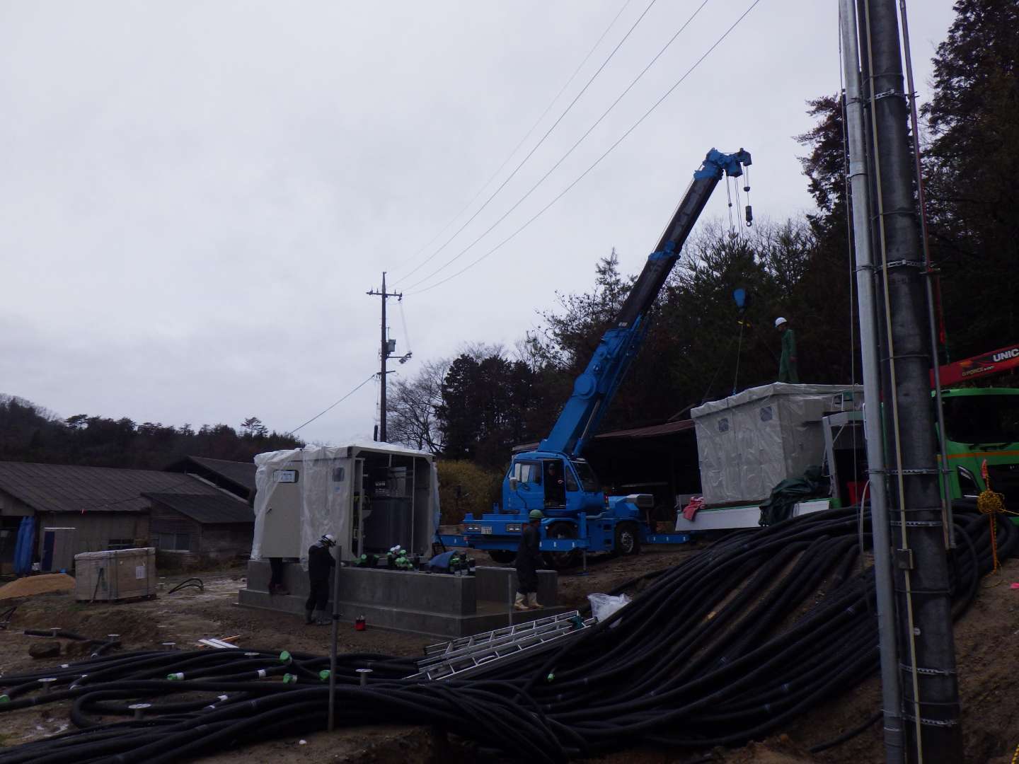 New その他 太陽光発電所 高圧受変電設備 太陽光発電所 キュービクル設置 太陽光発電所,高圧受変電設備工事 施工状況構内柱建柱,高圧引込からキュービクル(1500KVA)設置まで完了です。 場所 広島県府中市上下町 1 / 1 前の施工事例 工場・プラント 計装PLC工事,制御盤自社製作